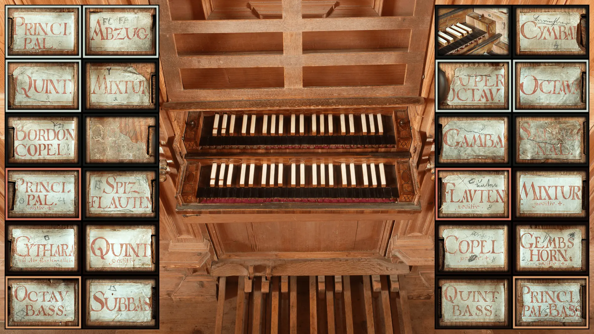 The restoration was meticulously carried out and exceptionally well documented. The objective was to make the organ playable while minimizing any alterations to preserve its original state. Since it remained in its original state, its sound is unusual for modern ears. As Christoph Bossert illustrates, it requires patience and involvement to fully appreciate its unique qualities. Notably, the organ boasts incredibly beautiful 8′ flute, string, and Quintatön stops, including the Cythara 8′ flute stop, which is a celeste stop that can be used with the Flauten 8′ stop to create a tremulant effect.